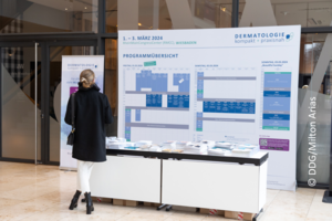 Neben insgesamt sieben praxisnahen Kursen gab es 150 Präsentationen und Vorträge sowie 17 Industriesymposien und Workshops. Zu den besonderen Höhepunkten gehörte die Keynote Lecture von Prof. Thomas Wendler zum Thema Digitalisierung und Künstliche Intelligenz in der Dermatologie und der allseits beliebte und unterhaltsame Derma-Talk, bei dem Dermatologinnen und Dermatologen klinische Perlen, Tipps und Tricks in der Dermatologie austauschten, moderiert von Dr. Steffen Gass, Prof. Roland Kaufmann und Prof. Silke Hofmann.