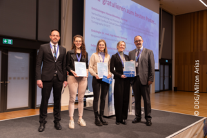 Die Poster-Kommission – bestehend aus Dr. Thyra Bandholz, Prof. Dimitra Kiritsi, Dr. Rolf Ostendorf, Dr. Andreas Pinter und Prof. Stephan Schreml – hatte im Vorfeld alle Poster begutachtet und die drei besten Poster ausgewählt. Prämiert wurden Dr. Inga Hansen (Hamburg) „Mogamulizumab-assoziierter Rash - eine Nebenwirkung mit hoher Relevanz“, Dr. Sonja Mathes (München) „Patch for PTCH(1) - Bedeutung von Autismus-Spektrumsstörung bei einem Fall von Gorlin-Syndrom“ und Hanna Wirsching (Augsburg) „Verlaufsbeurteilung von Psoriasis Plaques unter topischer und systemischer Therapie mittels Line-field Confocal Optical Coherence Tomography (LC-OCT) und Dynamic Optical Coherence Tomography (D-OCT)“. Die Gewinnerinnen wurden mit einer Urkunde und einem Preisgeld ausgezeichnet.