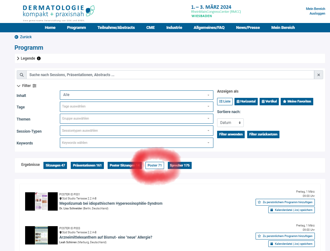 Sie möchten sich die Poster der KoPra 2024 noch einmal ansehen? Alle Poster finden Sie auf www.derma-tagungen.de im Bereich Programm/Programmübersicht.