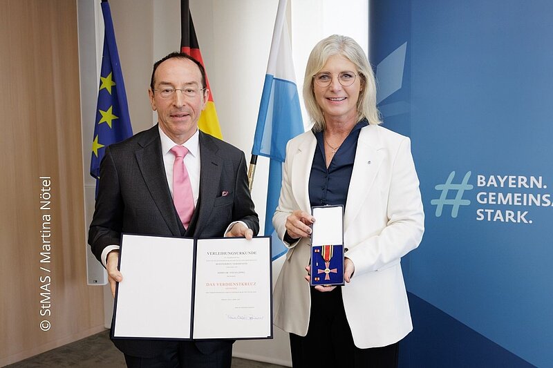 Der schon mehrfach ausgezeichnete LMU-Psychologe erhielt das Bundesverdienstkreuz der Bundesrepublik Deutschland am 2. Oktober 2024. Es ist die höchste Anerkennung, die die Bundesrepublik für Verdienste um das Gemeinwohl ausspricht. Überreicht wurde es von Staatsministerin Ulrike Scharf vom Staatsministerium für Familie, Arbeit und Soziales des Landes Bayern. Die Deutsche Dermatologische Gesellschaft dankt Dr. Zippel für sein beeindruckendes Engagement und gratuliert ihm sehr herzlich zu dieser hohen Auszeichnung.
