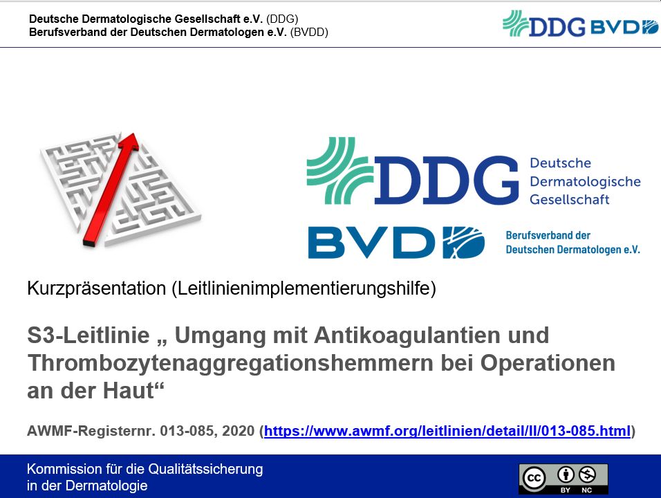 • S3-Leitlinie „Umgang mit Antikoagulantien und Thrombozytenaggregationshemmern bei Operationen an der Haut“