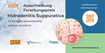 Zur Förderung wissenschaftlicher Arbeiten auf dem Gebiet der Hidradenitis suppurativa, wird vom Netzwerk für Hidradenitis suppurativa / Acne inversa Rhein-Ruhr e.V. in Kooperation mit der Arbeitsgemeinschaft Dermatologische Forschung (ADF) und der Deutschen Dermatologischen Gesellschaft (DDG) ab 2027 ein jährlicher Förderpreis für Nachwuchswissenschaftler ausgeschrieben.