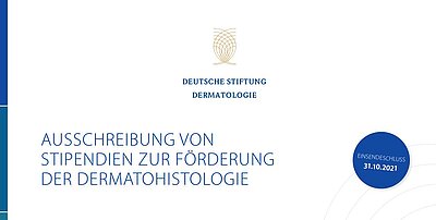 Die Deutsche Stiftung Dermatologie schreibt drei Ausbildungsstipendien (Gastaufenthalte/Training von ca. vier Wochen oder Forschungsprojekte bei/mit Histologie-Expert*innen) in Höhe von jeweils 3.000 EUR auf dem Gebiet der Dermatohistologie aus.