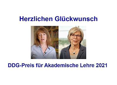 Der DDG-Preis für Akademische Lehre ist mit insgesamt 3.500 Euro dotiert. Das Preisgeld wird zwischen den beiden Preisträgerinnen geteilt. Vergeben wurde die Auszeichnung auf der 51. DDG-Tagung (14. bis 17. April 2021), die in diesem Jahr das erste Mal virtuell stattfand.