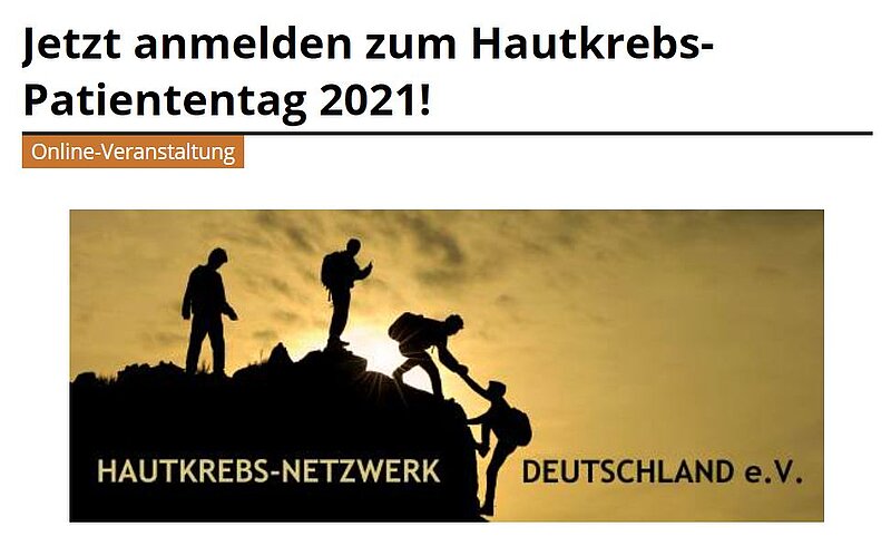 Informationen und Anmeldung unter: https://hautkrebs-netzwerk.de/patiententag-2021/