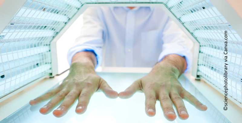 Kurz B, Berneburg M, Bäumler W, Karrer S. Phototherapie in Theorie und Praxis. J Dtsch Dermatol Ges. 2023 Aug;21(8):882-898. https://onlinelibrary.wiley.com/doi/full/10.1111/ddg.15126_g