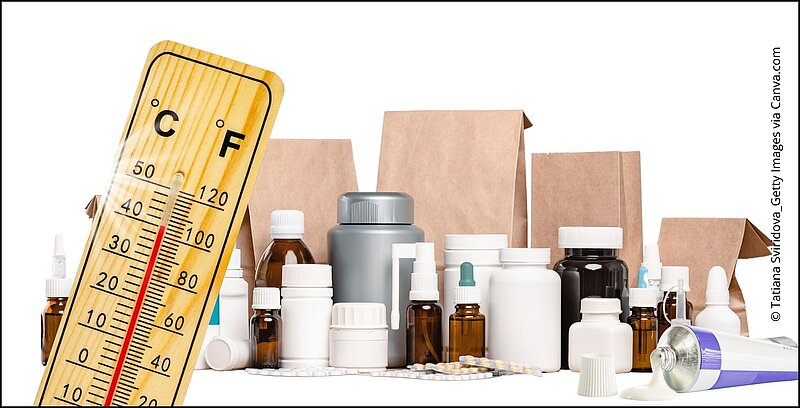 Auf dem jeweiligen Beipackzettel finden Patientinnen und Patienten Hinweise zur richtigen Aufbewahrung. Die meisten Medikamente sollen trocken bei Raumtemperatur (15 bis 25 Grad Celsius) gelagert werden. Aber angesichts der aktuellen Hitzewelle, steigt das Innenraum-Thermometer gern mal über die 25 Grad Celsius-Schwelle.
