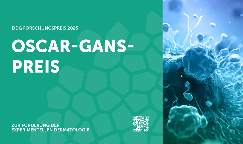 Mit dem Oscar-Gans-Preis 2025, einem der bedeutendsten Wissenschaftspreise in der Dermatologie, zeichnet die Deutsche Dermatologische Gesellschaft e. V. (DDG) hervorragende Arbeiten aus, die sich mit experimenteller Dermatologie befassen. Der Preis ist mit 15.000 Euro dotiert. Dem Kuratorium bleibt es vorbehalten, die Auszeichnung auf zwei gleichwertig preiswürdige Arbeiten zu verteilen. Zusätzlich werden zwei Förderpreise mit einer Dotierung von jeweils 5.000 Euro verliehen. Die Auswahl der preiswürdigen Arbeiten und die Preisverleihung erfolgen unter Ausschluss des Rechtsweges.